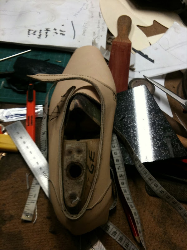 Plans and patternmaking... A "fit shoe" is made to check size and pattern...